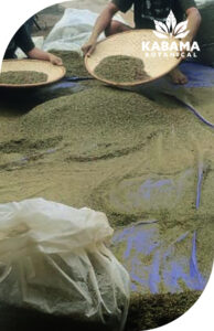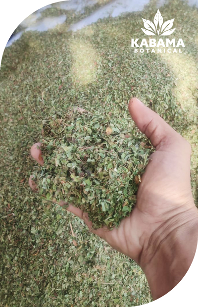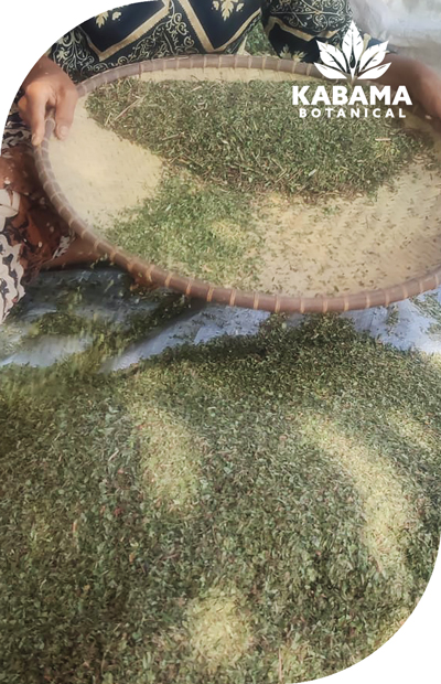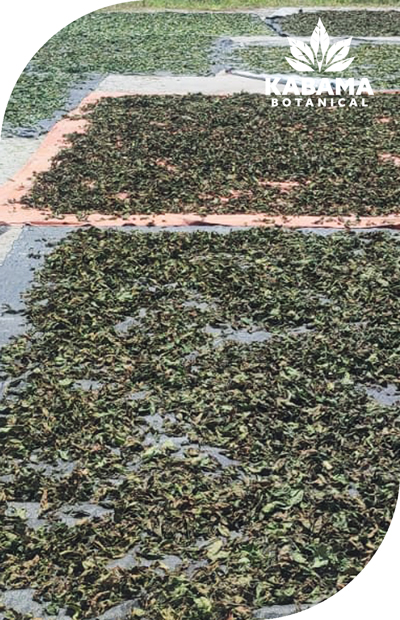After hand-selecting mature leaves, we spread them in thin, uniform layers across clean, elevated tarps or drying racks. The tropical sun provides intense heat and light, which rapidly and thoroughly removes moisture from the leaves. This quick and complete desiccation is essential for long-term preservation, preventing mold and preparing the material for fine milling.