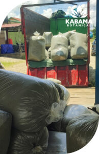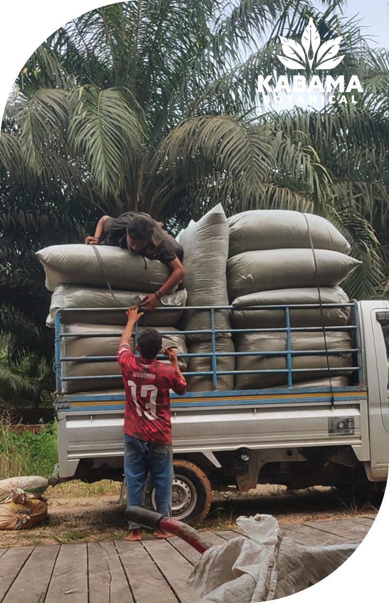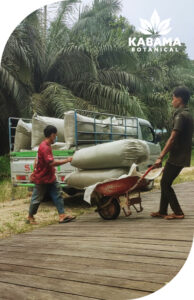 After the leaves are cleaned and packed at the farm, they are transported to our processing facility using traditional yet reliable local methods. In many river-based communities of Borneo, access routes are narrow and remote—making manual transport essential. Workers use wheelbarrows and small utility trucks to move large sacks of kratom from the harvest site to the processing house.