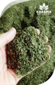 Dried leaves are cut into uniform flakes using stainless-steel machinery to prepare them for further processing. This step guarantees consistency in buffer size for milling.